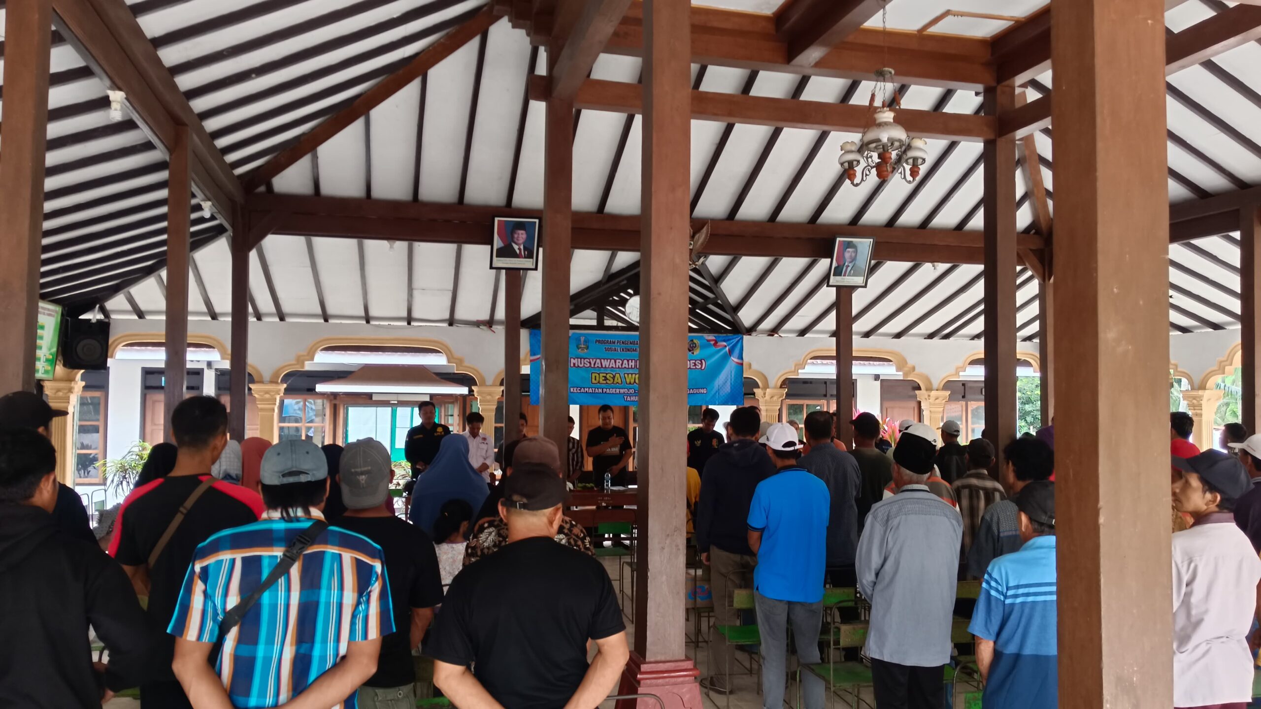 Ratusan warga Desa Wonorejo Kecamatan Pagerwojo mendatangi balai desa Menyerahkan berkas kepada pendamping hukum / Sunari ajttv.com