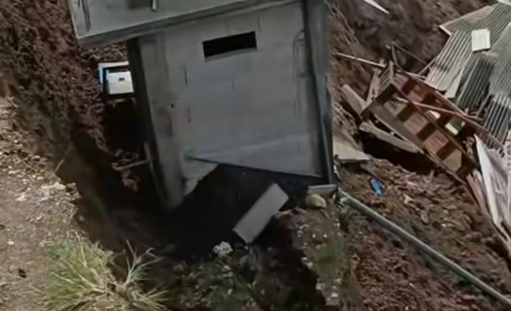 Jalur Lintas Selatan (JLS) Desa Rejosari, Kecamatan Kalidawir, Tulungagung Longsor sepanjang 70 meter dengan kedalaman sekitar 50 meter ke jurang menyeret dua warung yang baru saja selesai direnovasi/ Tangkapan Layar