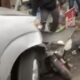 Di ruas jalan Trenggalek-Ponorogo, pohon tumbang menimpa pikap dan memutus kabel telepon, menyebabkan kemacetan panjang.