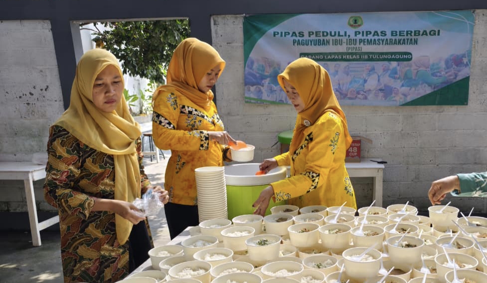 Lapas Tulungagung mengubah aksi berbagi makanan gratis menjadi wujud nyata gotong royong tanpa sekat antara petugas, ibu-ibu PIPAS (Paguyuban Ibu-Ibu Pemasyarakatan), dan masyarakat sekitar/ ist