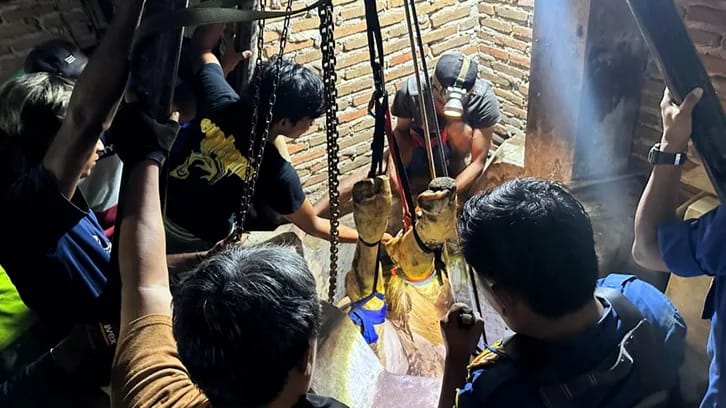 Seekor sapi seberat 7 kwintal tercebur ke dalam sumur tua dengan kedalaman sekitar 7 hingga 8 meter pada Sabtu (4/10/2025) malam ( Damkar)