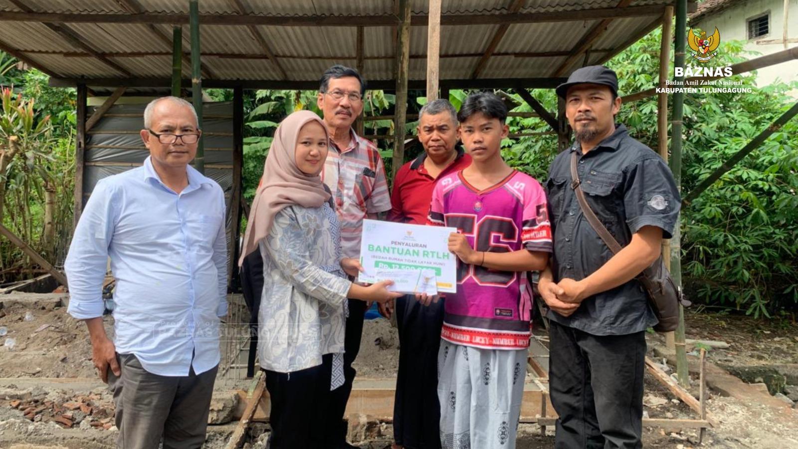 Badan Amil Zakat Nasional (BAZNAS) Tulungagung secara resmi menyalurkan bantuan Rumah Tinggal Layak Huni (RTLH) kepada keluarga Desmitha (18) / Istimewa