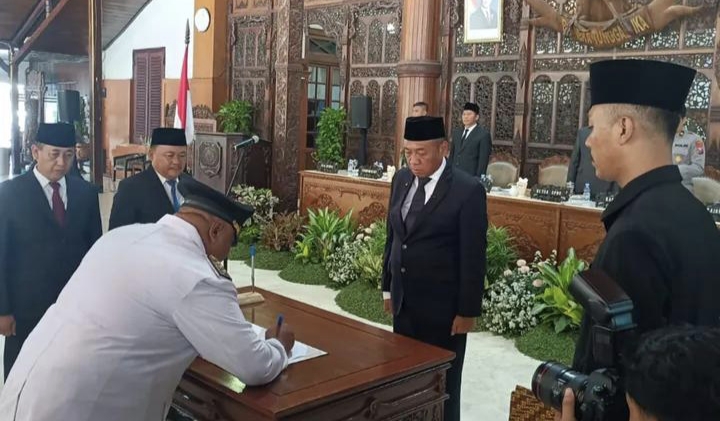 Sebanyak 141 Pejabat Administrator dan Pejabat Pengawas resmi dilantik dan diambil sumpah janji jabatannya di Pendopo Kongas Arum Kusumaning Bangsa, Selasa (30/12/2025) /Anang Yulianto