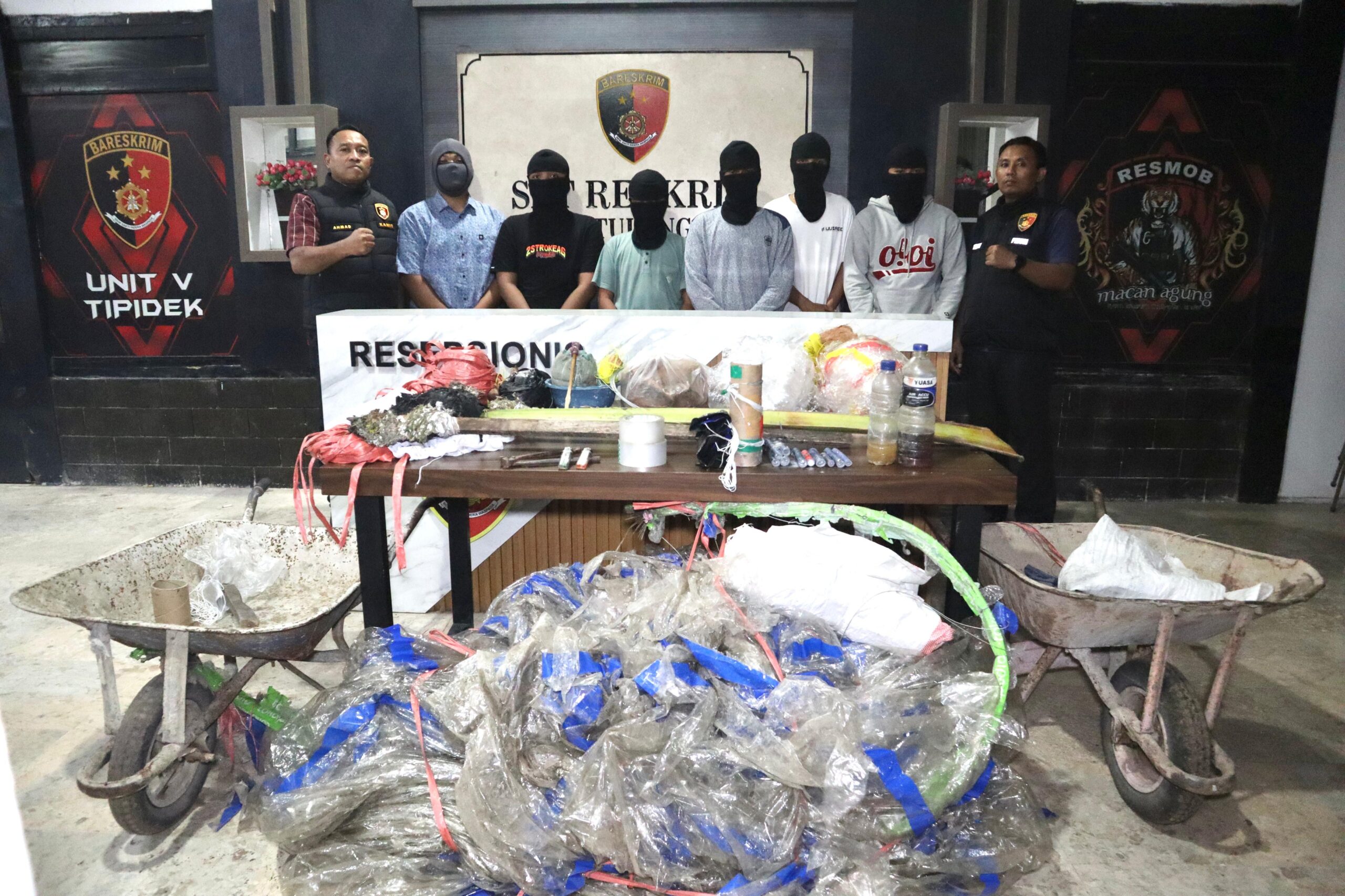 Dalam aksinya, Kapolres langsung menghampiri lokasi dan mengamankan 1 orang pelaku beserta barang bukti. Beberapa anak lainnya melarikan diri saat dipergoki oleh Kapolres. Barang bukti yang diamankan antara lain 2 buah balon udara berukuran besar, petasan, 3 buah HP, dan 3 unit sepeda motor.
