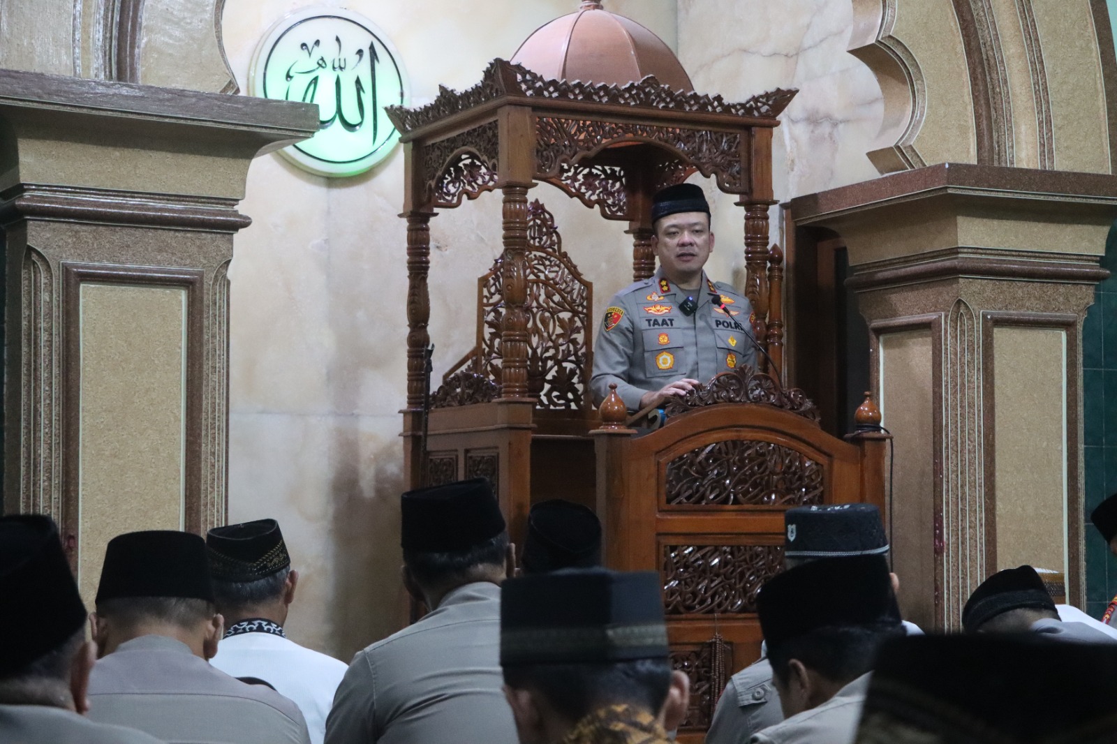 Usai sambutan, kegiatan dilanjutkan dengan kultum dan bersalam-salaman. Sebagai penutup, Kapolres juga menyerahkan infaq untuk Masjid Besar Al Hikmah yang diterima secara simbolis oleh takmir masjid.