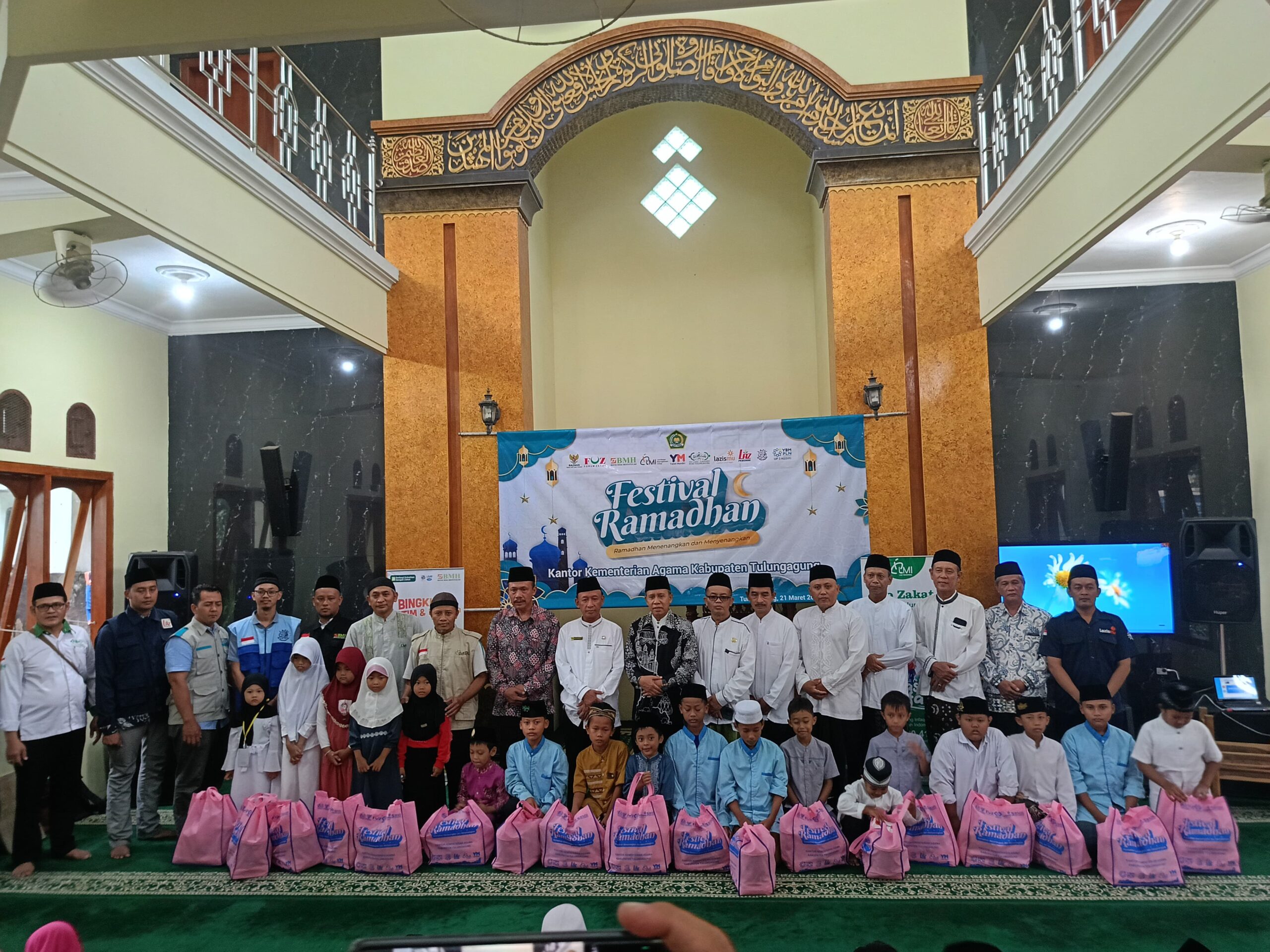 TULUNGAGUNG, AJTTV COM – Kementerian Agama (Kemenag) Tulungagung menyelenggarakan acara penyaluran bingkisan dan santunan untuk 83 anak yatim dhuafa di Masjid Nurul Hikmah Kemenag Tulungagung.