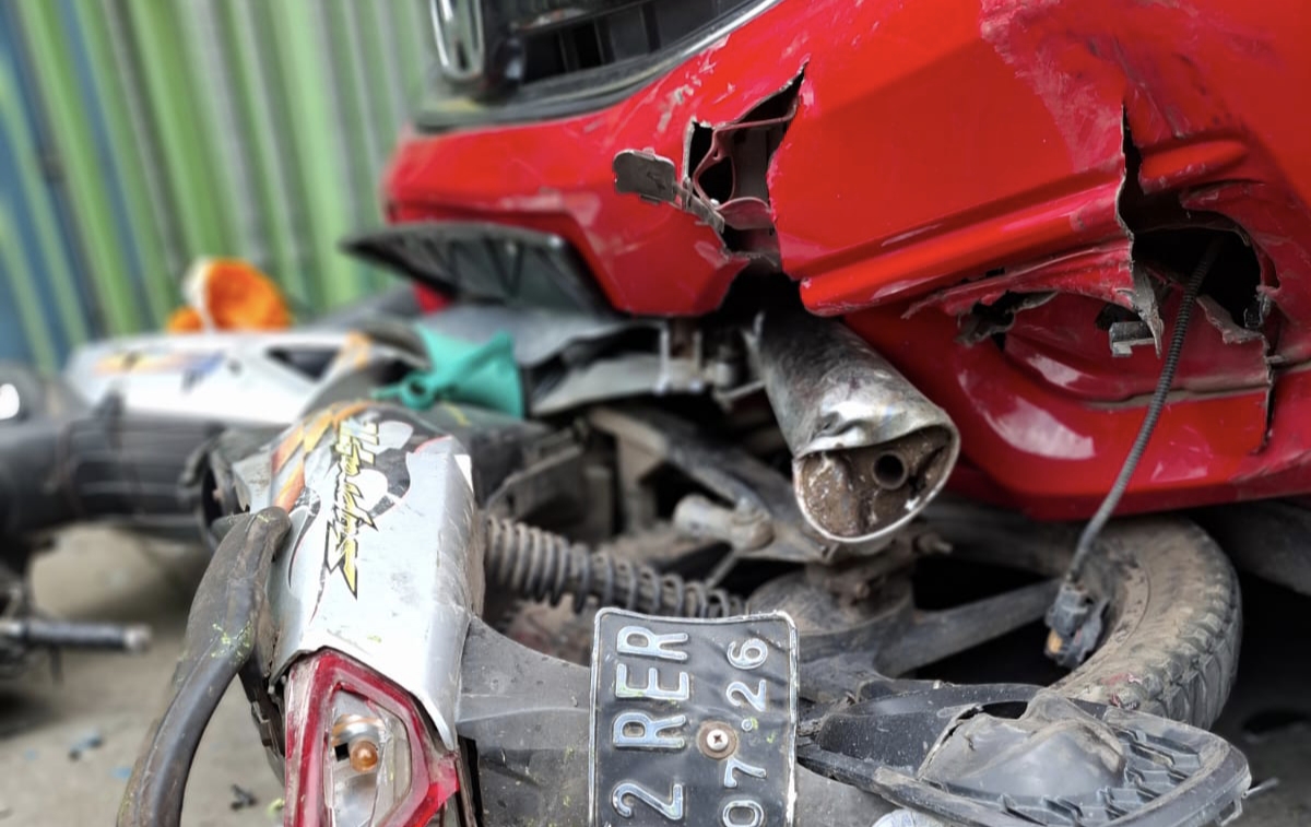 Sepeda motor dan mobil brio pasca kecelakaan ( anang Yulianto ajttv.com)