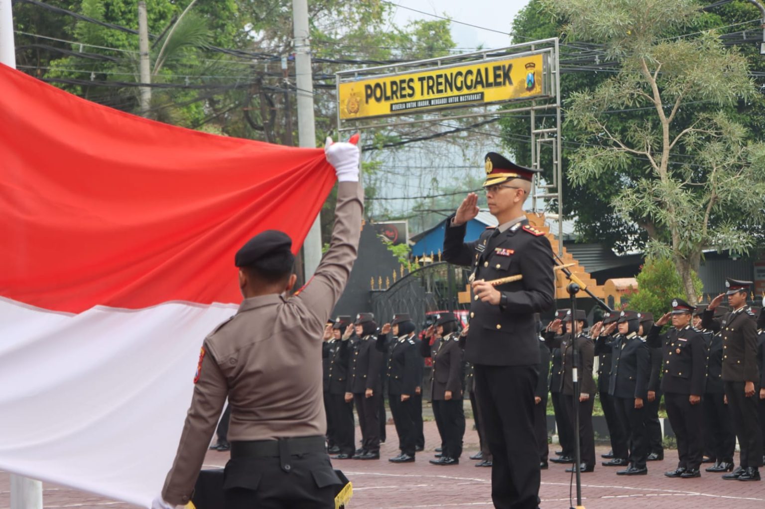 Jajaran Kepolisian Resor Trenggalek menggelar upacara bendera khusus di halaman Mapolres, Selasa (28/10), dalam rangka memperingati Hari Sumpah Pemuda tahun 2025 / Istimewa
