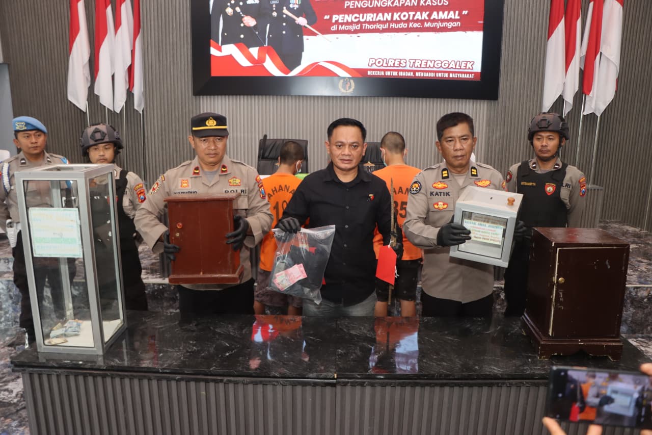 TRENGGALEK, AJTTV.COM – Kasus pencurian kotak amal yang sempat membuat heboh masyarakat, terutama di wilayah Kecamatan Munjungan, Kabupaten Trenggalek, akhirnya terungkap tuntas. Satuan Reserse Kriminal (Satreskrim) Polres Trenggalek bergerak cepat dan berhasil mengamankan sembilan orang terduga pelaku.