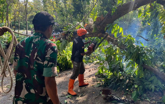 TNI dan BPBD Trenggalek memotong pohon yang lapuk / Foto : Ist