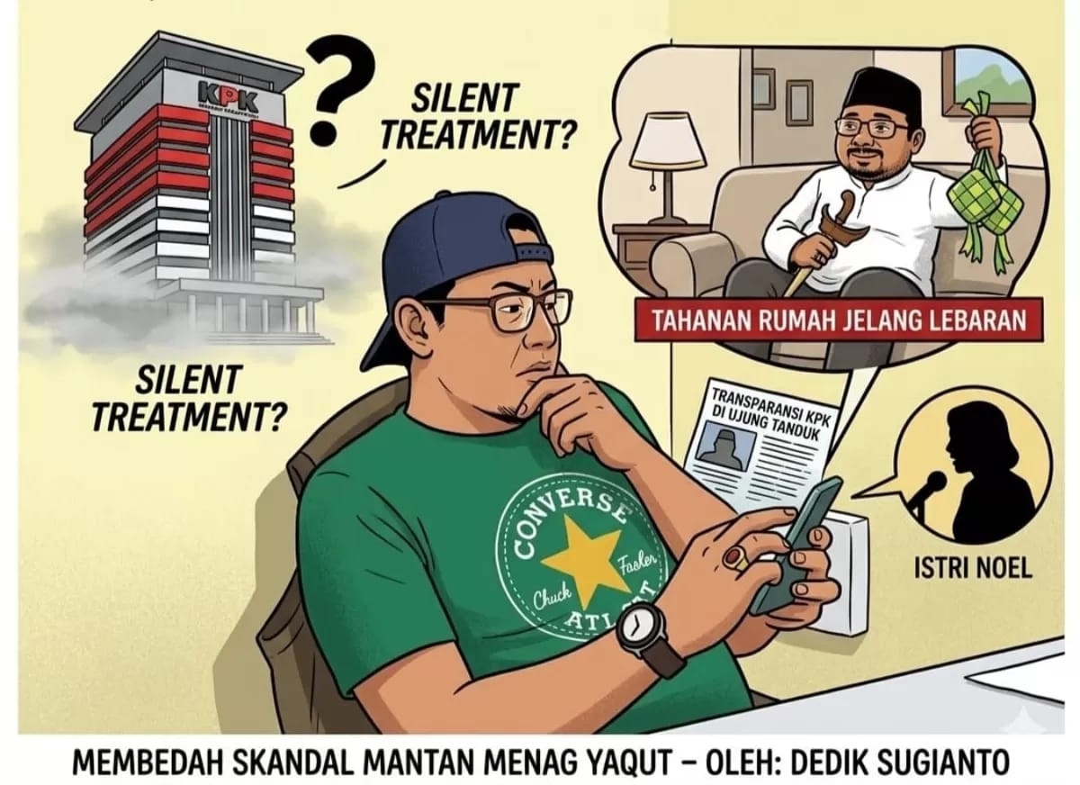 Kabar mengejutkan mengenai penetapan status Tahanan Rumah bagi tersangka mantan Menteri Agama, Yaqut Cholil Qoumas, tepat di ambang perayaan Idul Fitri 1447 H, menyisakan tanda tanya besar yang menggantung di benak publik. Mengapa KPK memilih untuk bungkam?.